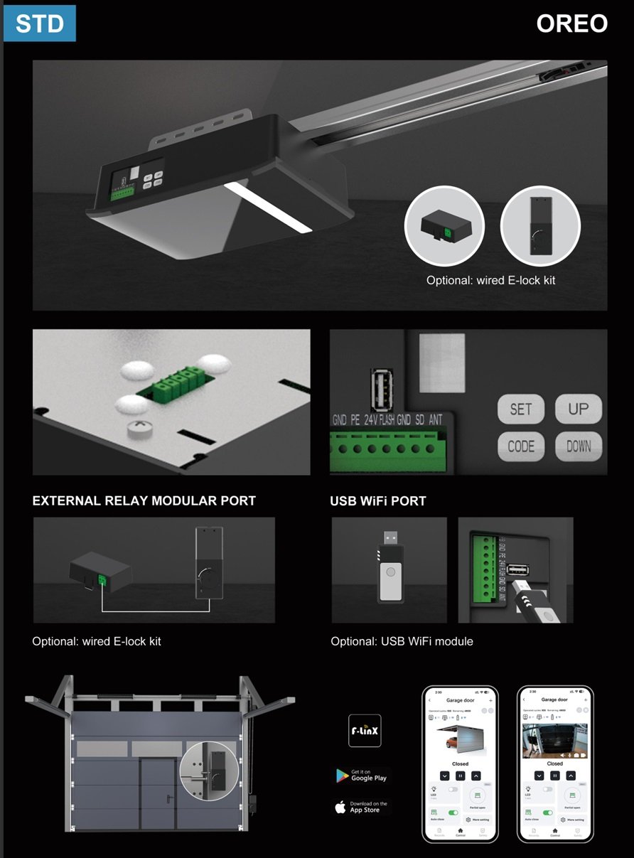 Kit de electro cerradura especialmente diseñada para el motor de puerta seccional OREO.