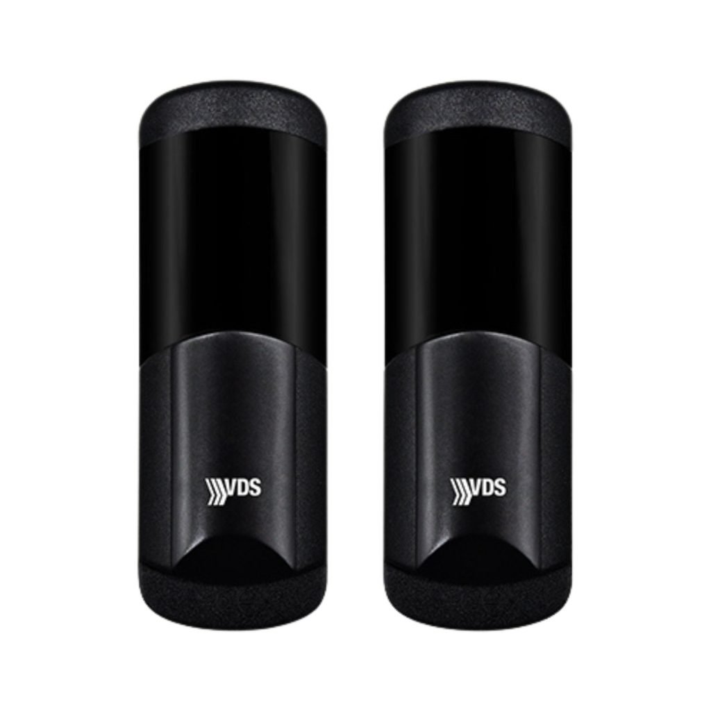 Juego de fotocélulas de tipo emisor receptor (TX-RX) donde el emisor funciona con baterías de litio, por lo que no se necesita instalar cables al otro lado de la puerta.