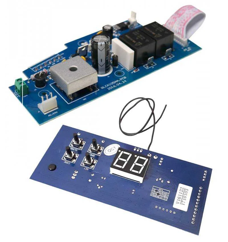 Se incluyen ambas placas, la de potencia (placa base) y la de maniobra (dígitos display, radio, botonera).