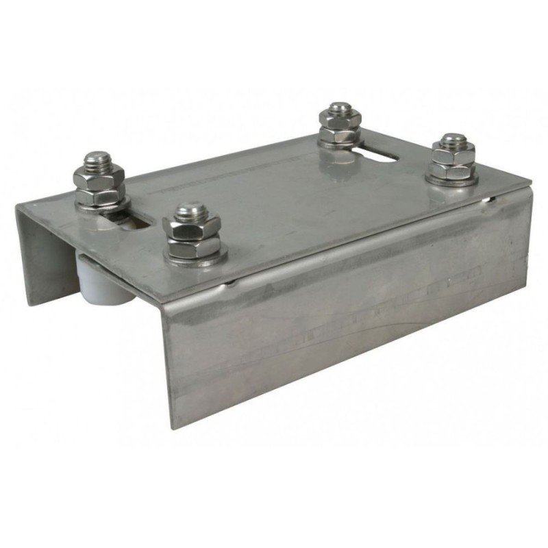 Caja mediana de poleas de rodillos de nylon regulables para motores de puertas correderas, fabricado en hierro cincado, poleas de nylon, para fijación soldadura o tornillos.