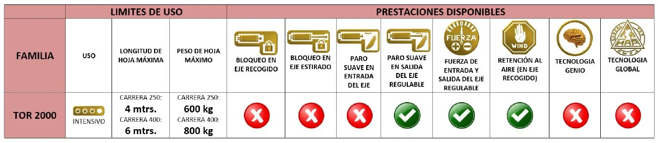 | CARACTERÍSITICAS | TOR 2000 |